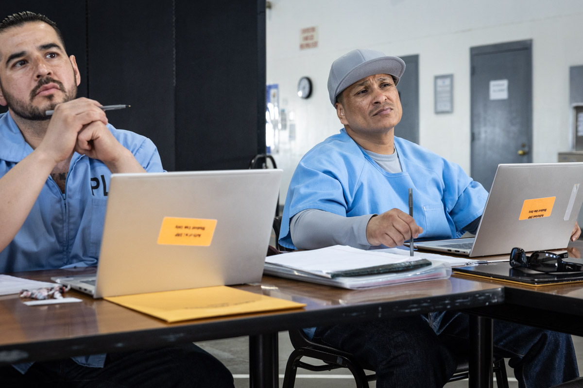 These images are of two academic classes in the VISTA (Valuing Incarcerated Scholars through Academia) program run by San Diego State University; this is a two-year program to receive a Bachelor of Arts completion degree. Seen here are:
