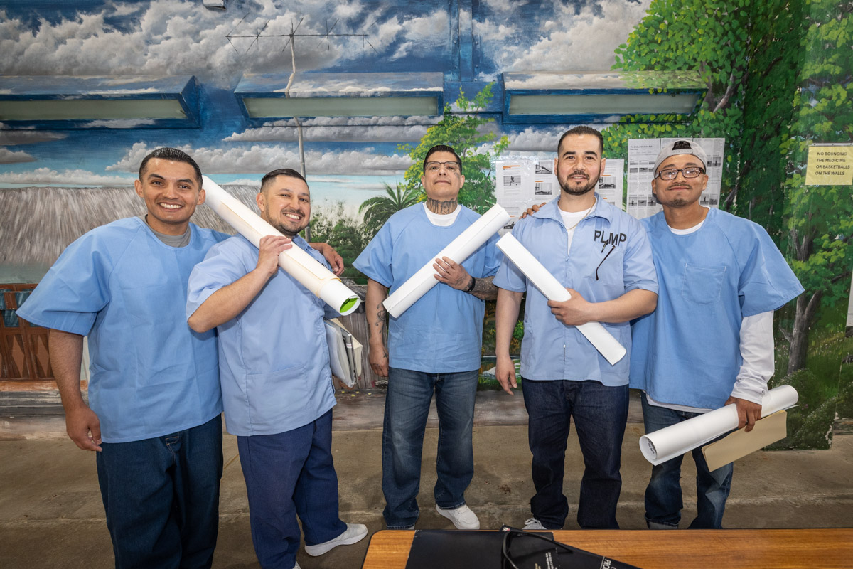 These images are of Open House events on two yards, showcasing the VISTA (Valuing Incarcerated Scholars Through Academia) program run by San Diego State University at Centinela State Prison (CEN); this is a two-year Bachelor of Arts completion degree. Current VISTA students created posters featuring their research studies, and are showing them to men who are interested in joining this program. The existing students also joined a panel discussion, during which they fielded questions about their experiences in the program.
