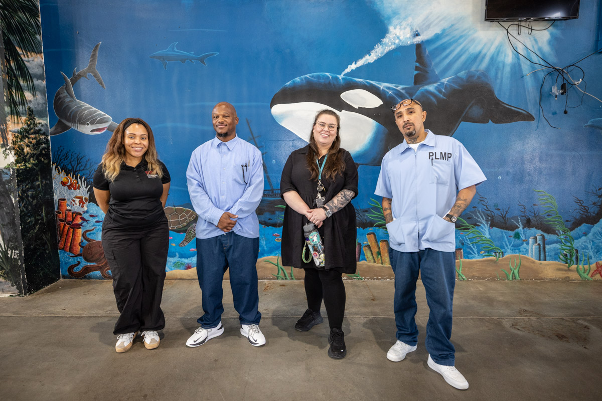 These images are of Open House events on two yards, showcasing the VISTA (Valuing Incarcerated Scholars Through Academia) program run by San Diego State University at Centinela State Prison (CEN); this is a two-year Bachelor of Arts completion degree. Current VISTA students created posters featuring their research studies, and are showing them to men who are interested in joining this program. The existing students also joined a panel discussion, during which they fielded questions about their experiences in the program.