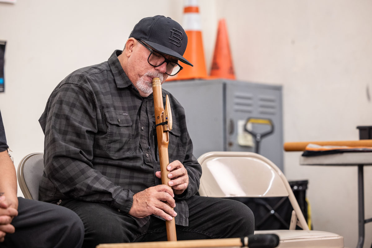 Yaotl Orozco and Zacarias Bernal are the teaching artists for Tia Chucha’s Cultural Music class. Yaotl is also part of the band of Aztlan Unearthed. The teaching artists were joined by Aztlan Unearthed members, Frank Aragon, Joe Galarza and Ignacio Lopez. This mini concert brought together the band and participants of the class to celebrate through music their accomplishments throughout the class. The class met weekly to share indigenous rhythms, and shared together their healing experiences. Throughout the class they had cultural exchanges, and shared memories and teachings from their home communities.