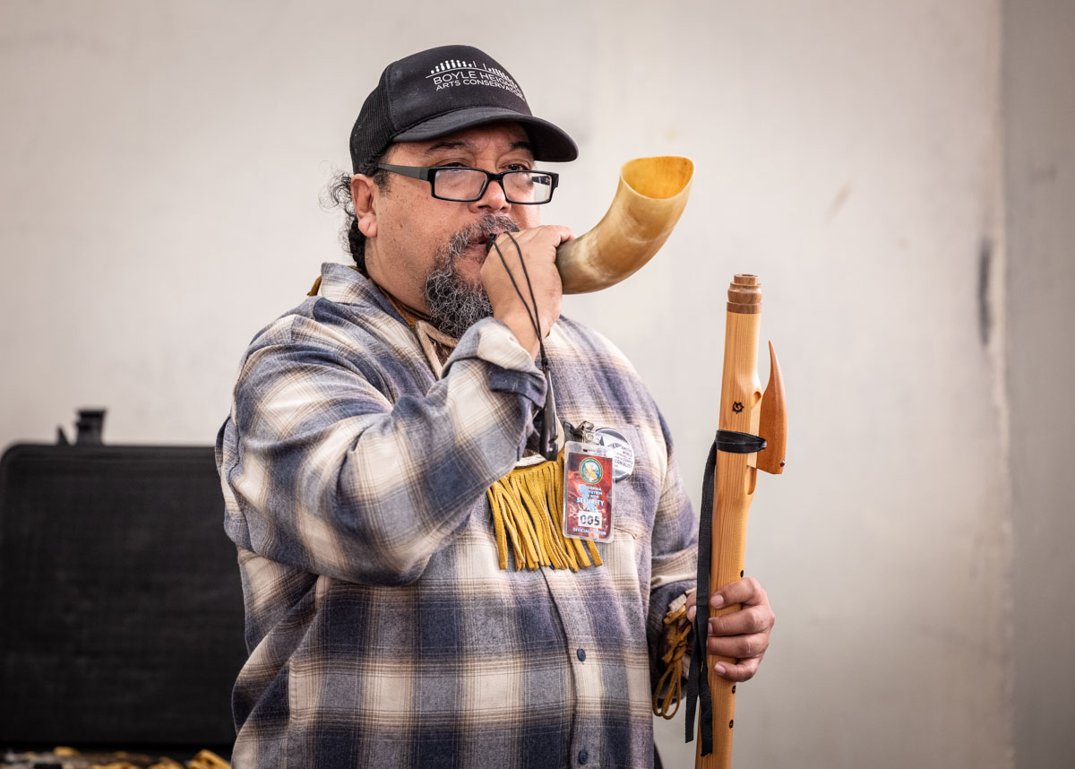 Yaotl Orozco and Zacarias Bernal are the teaching artists for Tia Chucha’s Cultural Music class. Yaotl is also part of the band of Aztlan Unearthed. The teaching artists were joined by Aztlan Unearthed members, Frank Aragon, Joe Galarza and Ignacio Lopez. This mini concert brought together the band and participants of the class to celebrate through music their accomplishments throughout the class. The class met weekly to share indigenous rhythms, and shared together their healing experiences. Throughout the class they had cultural exchanges, and shared memories and teachings from their home communities.