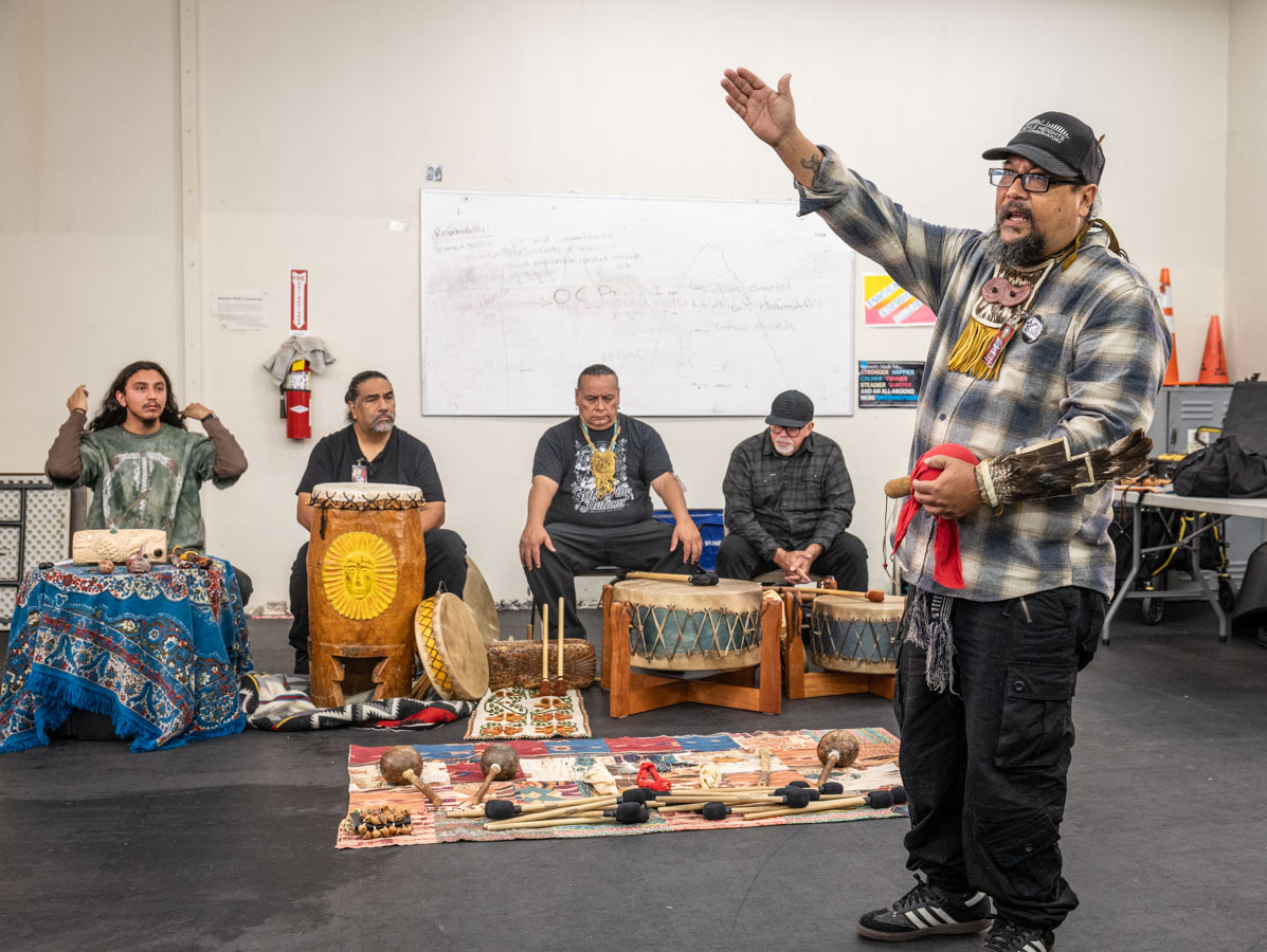 Yaotl Orozco and Zacarias Bernal are the teaching artists for Tia Chucha’s Cultural Music class. Yaotl is also part of the band of Aztlan Unearthed. The teaching artists were joined by Aztlan Unearthed members, Frank Aragon, Joe Galarza and Ignacio Lopez. This mini concert brought together the band and participants of the class to celebrate through music their accomplishments throughout the class. The class met weekly to share indigenous rhythms, and shared together their healing experiences. Throughout the class they had cultural exchanges, and shared memories and teachings from their home communities.