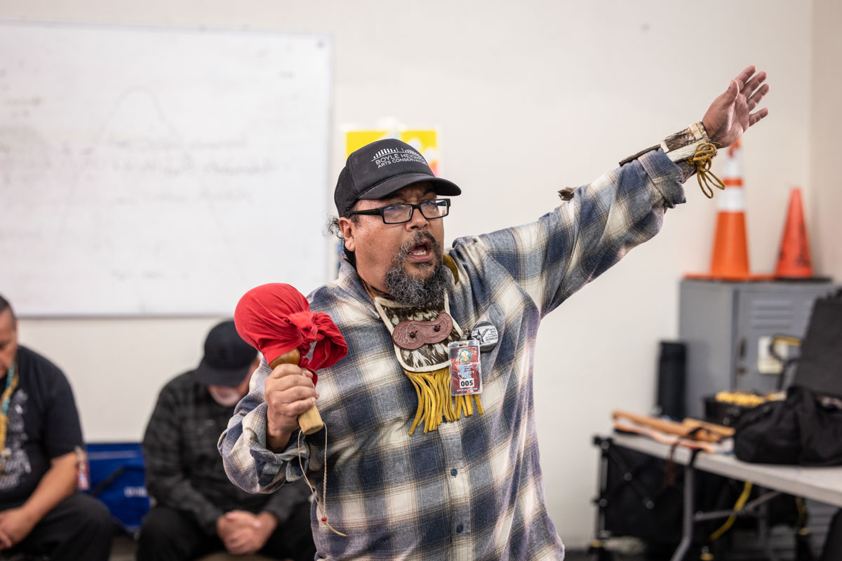 Yaotl Orozco and Zacarias Bernal are the teaching artists for Tia Chucha’s Cultural Music class. Yaotl is also part of the band of Aztlan Unearthed. The teaching artists were joined by Aztlan Unearthed members, Frank Aragon, Joe Galarza and Ignacio Lopez. This mini concert brought together the band and participants of the class to celebrate through music their accomplishments throughout the class. The class met weekly to share indigenous rhythms, and shared together their healing experiences. Throughout the class they had cultural exchanges, and shared memories and teachings from their home communities.