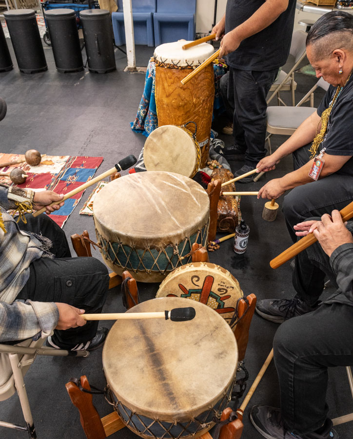 Yaotl Orozco and Zacarias Bernal are the teaching artists for Tia Chucha’s Cultural Music class. Yaotl is also part of the band of Aztlan Unearthed. The teaching artists were joined by Aztlan Unearthed members, Frank Aragon, Joe Galarza and Ignacio Lopez. This mini concert brought together the band and participants of the class to celebrate through music their accomplishments throughout the class. The class met weekly to share indigenous rhythms, and shared together their healing experiences. Throughout the class they had cultural exchanges, and shared memories and teachings from their home communities.