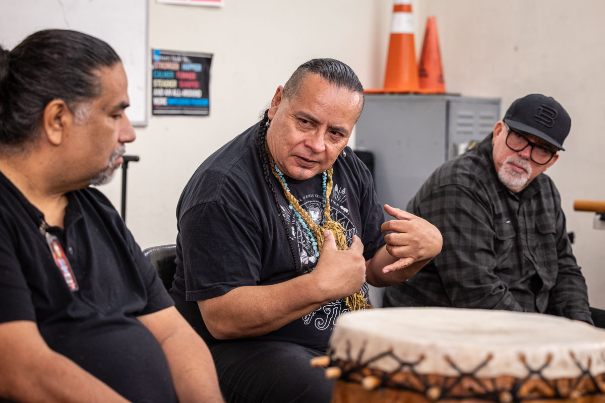 Yaotl Orozco and Zacarias Bernal are the teaching artists for Tia Chucha’s Cultural Music class. Yaotl is also part of the band of Aztlan Unearthed. The teaching artists were joined by Aztlan Unearthed members, Frank Aragon, Joe Galarza and Ignacio Lopez. This mini concert brought together the band and participants of the class to celebrate through music their accomplishments throughout the class. The class met weekly to share indigenous rhythms, and shared together their healing experiences. Throughout the class they had cultural exchanges, and shared memories and teachings from their home communities.
