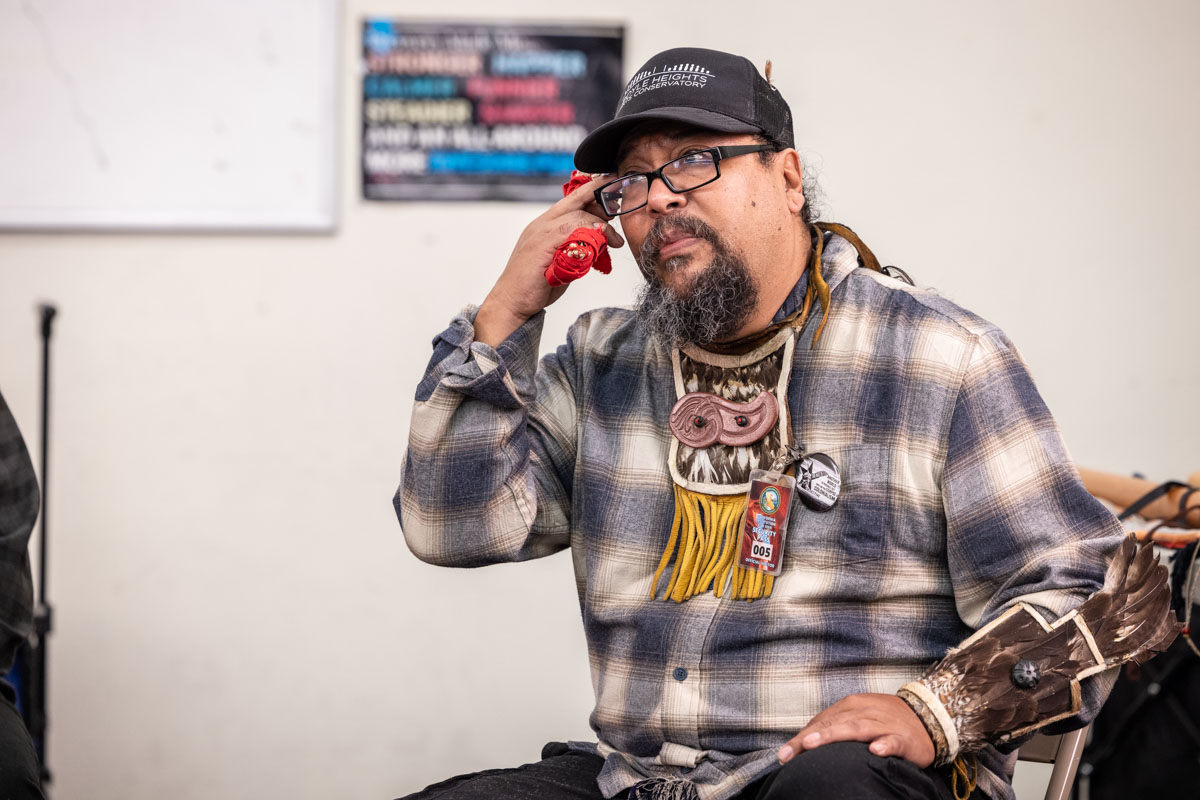 Yaotl Orozco and Zacarias Bernal are the teaching artists for Tia Chucha’s Cultural Music class. Yaotl is also part of the band of Aztlan Unearthed. The teaching artists were joined by Aztlan Unearthed members, Frank Aragon, Joe Galarza and Ignacio Lopez. This mini concert brought together the band and participants of the class to celebrate through music their accomplishments throughout the class. The class met weekly to share indigenous rhythms, and shared together their healing experiences. Throughout the class they had cultural exchanges, and shared memories and teachings from their home communities.