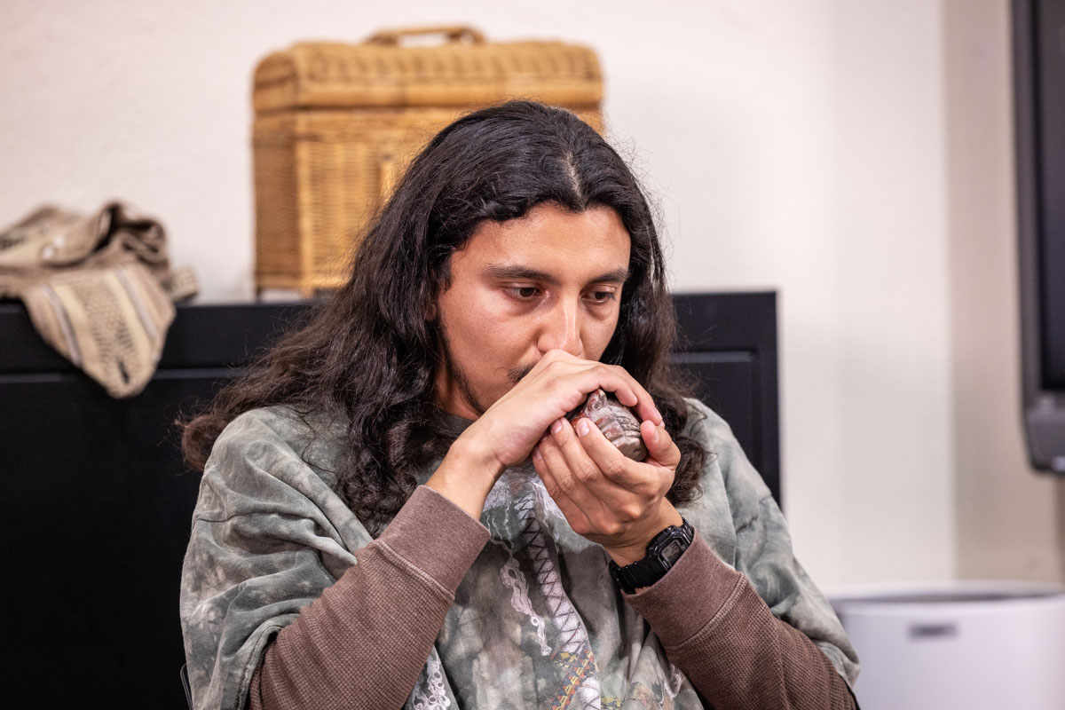 Yaotl Orozco and Zacarias Bernal are the teaching artists for Tia Chucha’s Cultural Music class. Yaotl is also part of the band of Aztlan Unearthed. The teaching artists were joined by Aztlan Unearthed members, Frank Aragon, Joe Galarza and Ignacio Lopez. This mini concert brought together the band and participants of the class to celebrate through music their accomplishments throughout the class. The class met weekly to share indigenous rhythms, and shared together their healing experiences. Throughout the class they had cultural exchanges, and shared memories and teachings from their home communities.