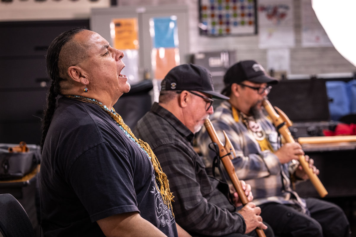 Yaotl Orozco and Zacarias Bernal are the teaching artists for Tia Chucha’s Cultural Music class. Yaotl is also part of the band of Aztlan Unearthed. The teaching artists were joined by Aztlan Unearthed members, Frank Aragon, Joe Galarza and Ignacio Lopez. This mini concert brought together the band and participants of the class to celebrate through music their accomplishments throughout the class. The class met weekly to share indigenous rhythms, and shared together their healing experiences. Throughout the class they had cultural exchanges, and shared memories and teachings from their home communities.
