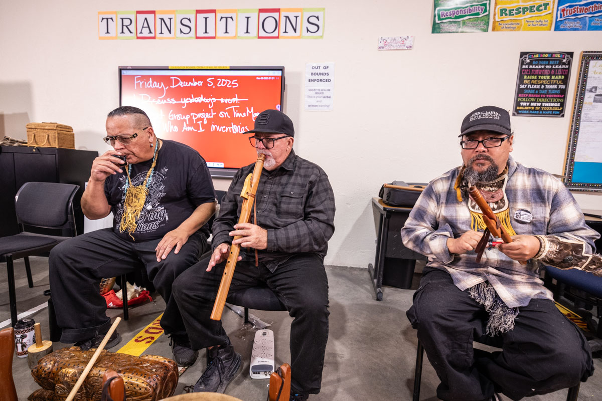 Yaotl Orozco and Zacarias Bernal are the teaching artists for Tia Chucha’s Cultural Music class. Yaotl is also part of the band of Aztlan Unearthed. The teaching artists were joined by Aztlan Unearthed members, Frank Aragon, Joe Galarza and Ignacio Lopez. This mini concert brought together the band and participants of the class to celebrate through music their accomplishments throughout the class. The class met weekly to share indigenous rhythms, and shared together their healing experiences. Throughout the class they had cultural exchanges, and shared memories and teachings from their home communities.