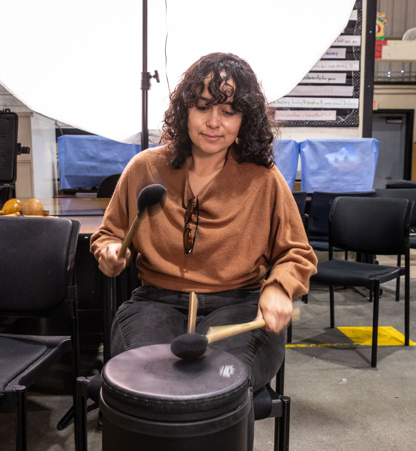 Yaotl Orozco and Zacarias Bernal are the teaching artists for Tia Chucha’s Cultural Music class. Yaotl is also part of the band of Aztlan Unearthed. The teaching artists were joined by Aztlan Unearthed members, Frank Aragon, Joe Galarza and Ignacio Lopez. This mini concert brought together the band and participants of the class to celebrate through music their accomplishments throughout the class. The class met weekly to share indigenous rhythms, and shared together their healing experiences. Throughout the class they had cultural exchanges, and shared memories and teachings from their home communities.