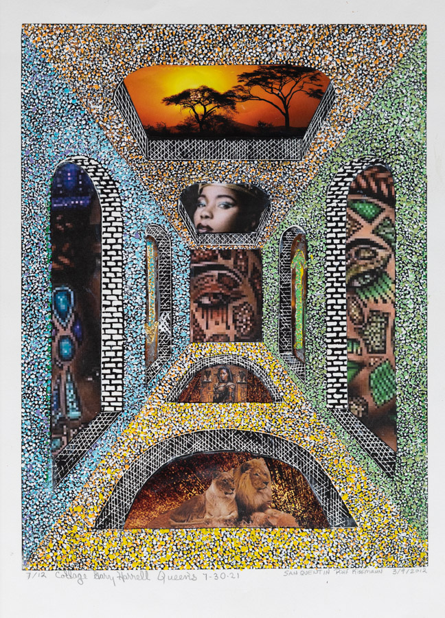 "Queens”, Linoleum Relief Cut Collage, 9x12 inches, 2015