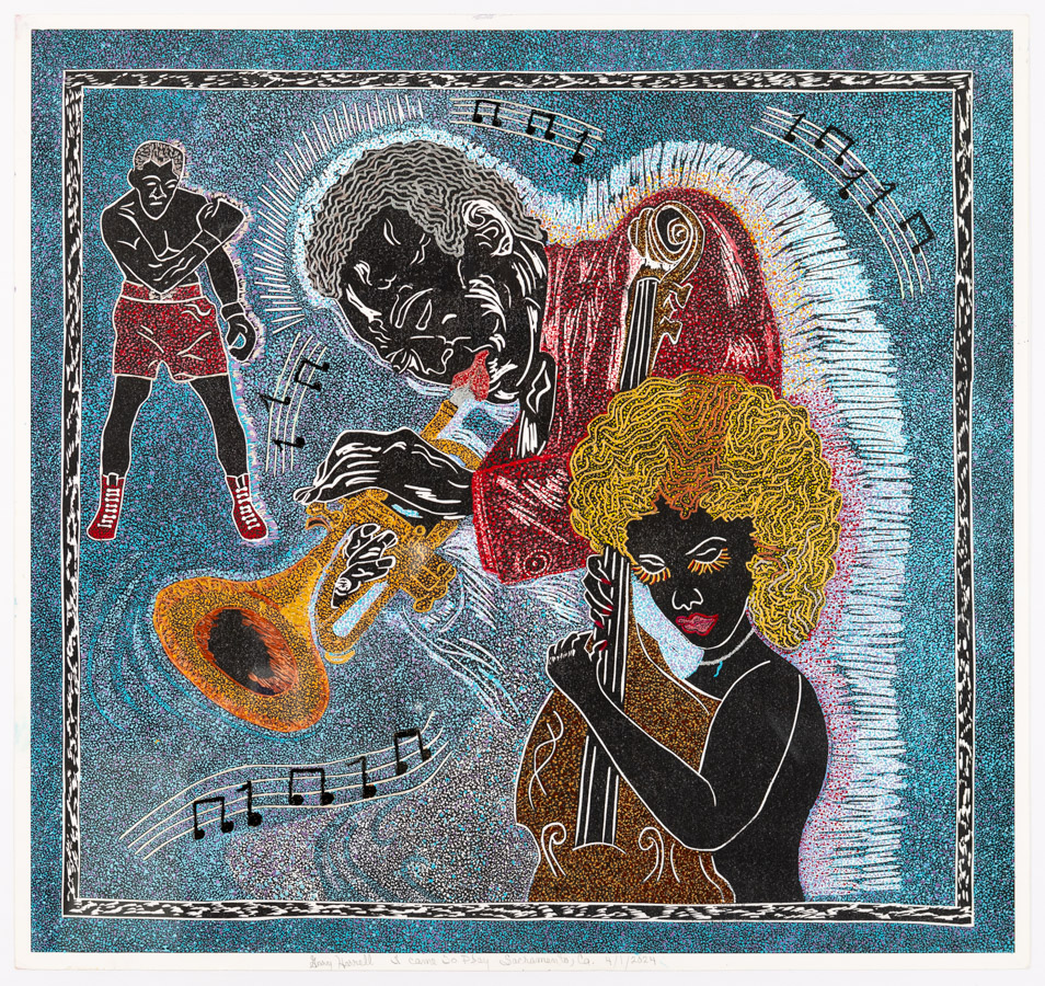 ”I Came to Play”, Black Linoleum relief cut, 30x29 inches, 2015