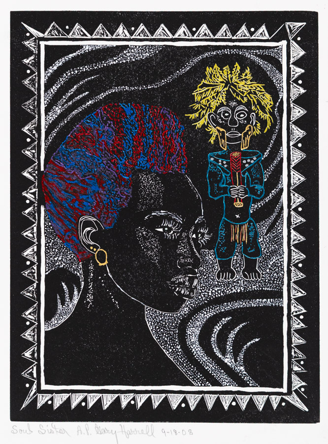 ”Soul Sister”, Black Linoleum relief cut with Acrylic Paint, 9x12 inches, 2018