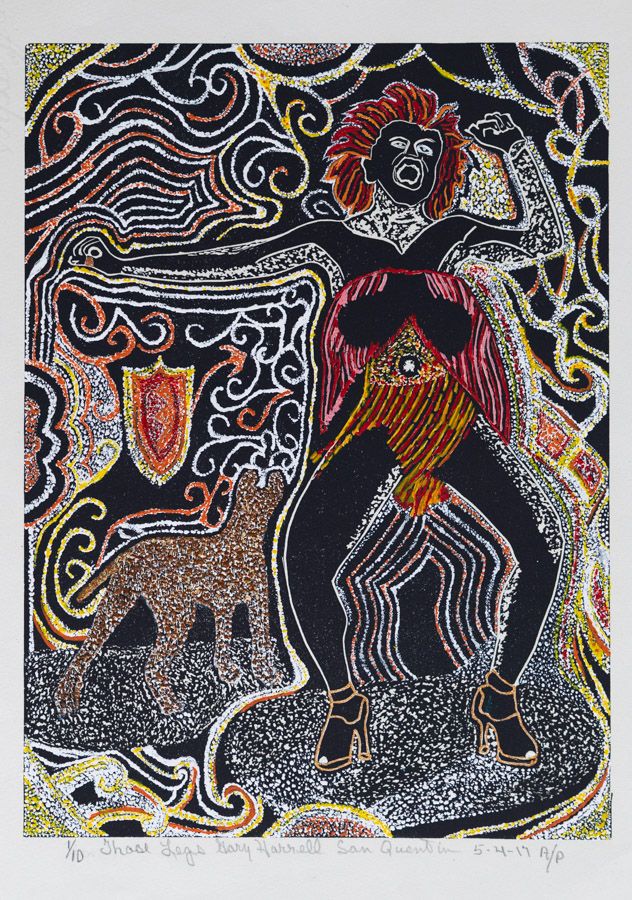 ”Those Legs”, Black linoleum relief cut, 9x12 inches, 2017