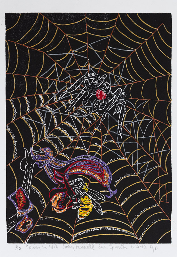 ”Spider in Web”, Black linoleum relief cut, 9x12 inches, 2012