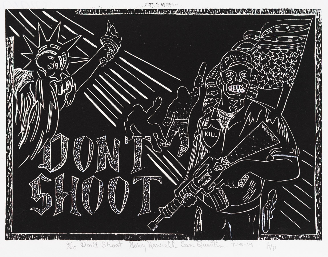 ”Don’t Shoot”, Black linoleum relief cut, 9x12 inches, 2014
