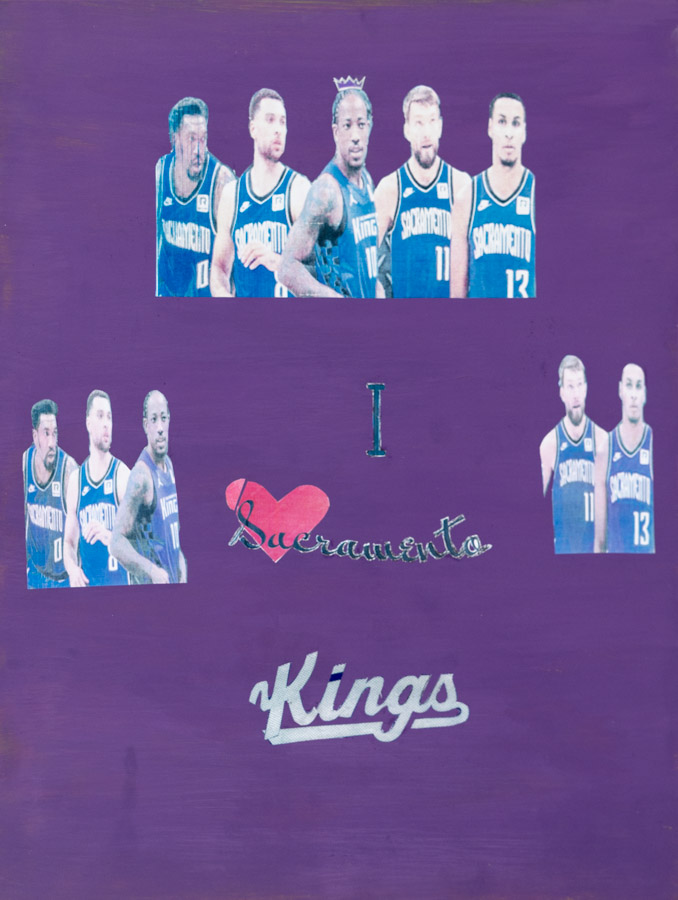 ”I Love Sacramento Kings”, Collage and Acrylic Paint, 18x44 inches, 2025