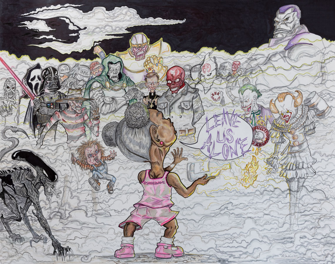 “Hell Mary”, O. Smith da Artivist; pencil, Prismacolor, ink, marker; 22.5x30 in; San Quentin; 2023